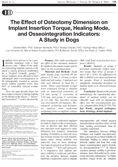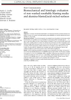 By: Jimbo R, Anchieta R, Baldassarri M, Granato R, Marin C, Teixeira HS, Tovar N, Stefan V, Janal MN, Coelho PG