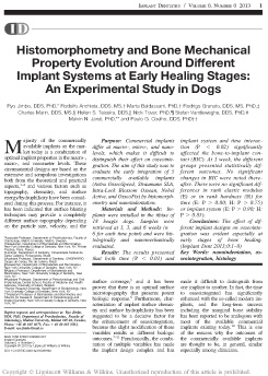 Histomorphometry and Bone Mechanical Property Evolution Around Different Implant Systems at Early Healing Stages. An Experimental Study in [Synopsis]